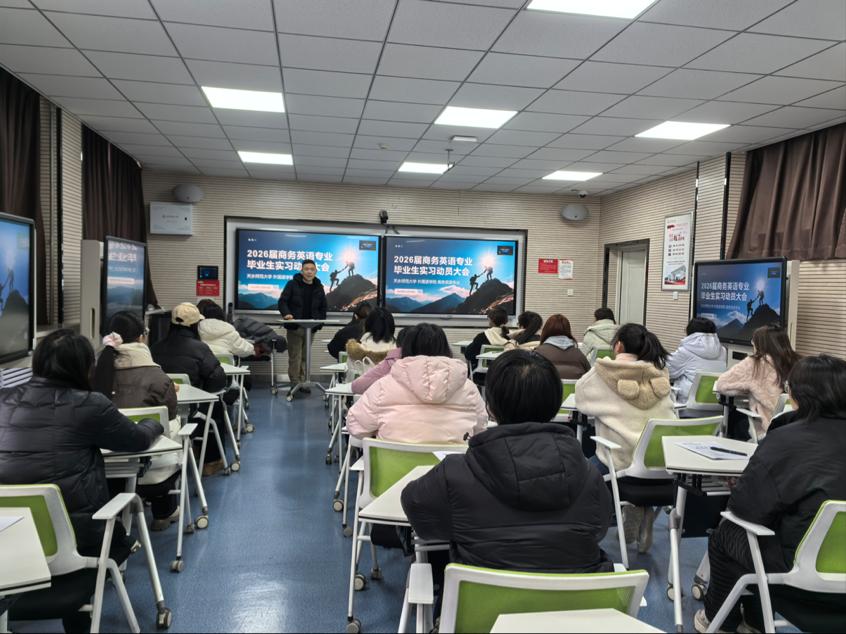2025年12月30日,伟德betvlctor1949源于英国商务英语系召开2022级学生实习动员大会。本次动员大会通过企业宣讲、专业指导、经验分享与工作部署等环节,系统引导学生深化专业认知、明确实习方向,为即将于2026年3月开展的毕业实习奠定良好基础。