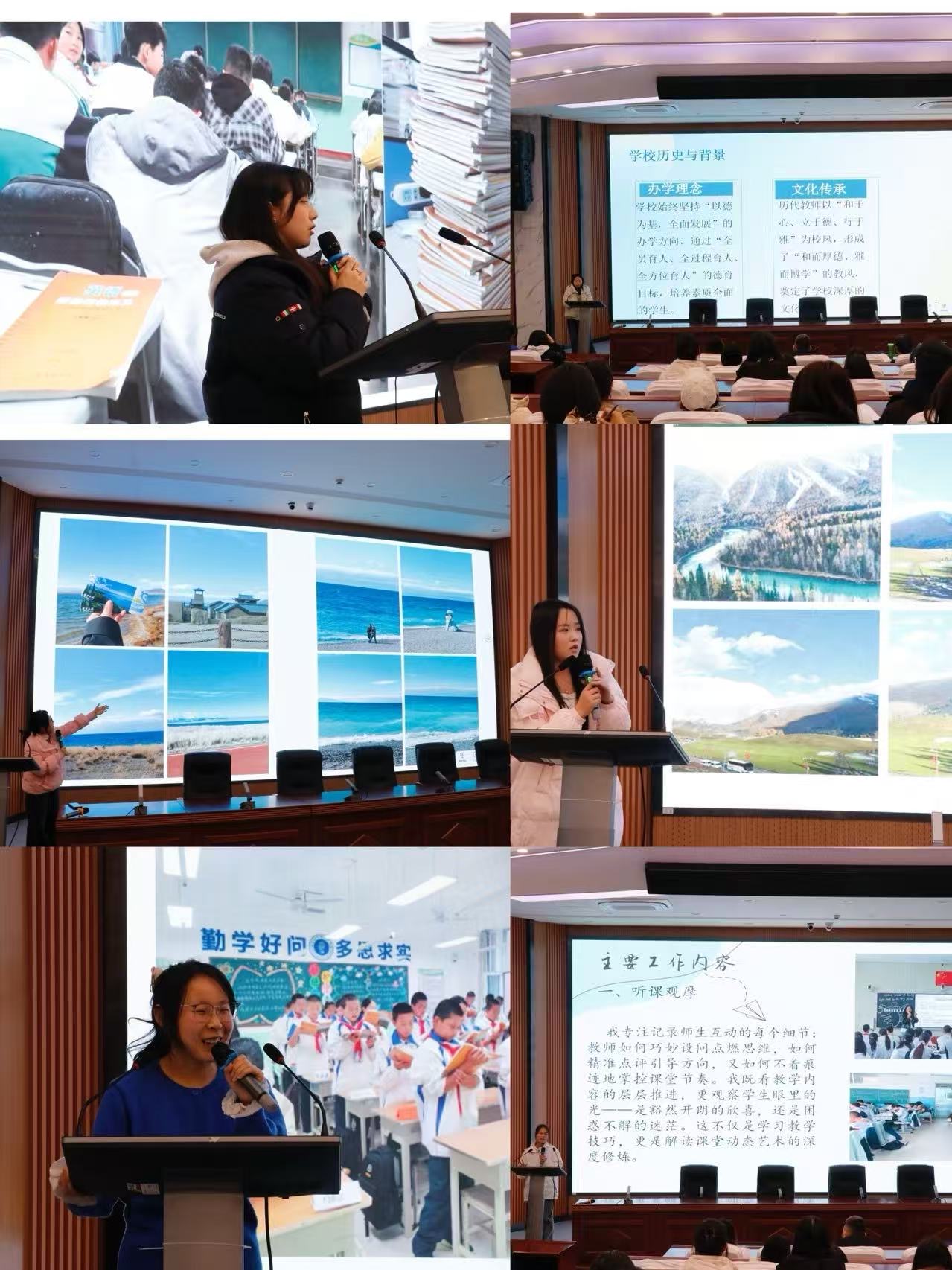 大会伊始,6位刚刚结束实习的2022级优秀实习生代表分享实习心得与成长体会。闫莉花同学从心态转变与课堂实践出发,讲述在天水田家炳中学实习期间对教师角色的进一步理解;赵子怡同学结合在新疆阜康实习经历,分享“教育的本质是温暖”的教育体悟;刘秋瑞同学对实习全过程进行系统梳理,总结课堂教学与备课反思的有效方法;张敏同学重点介绍“一空一阅”作业批改模式的实践经验;邓依彤同学围绕赴疆实习,从学情分析、安全防护与跨区域适应等方面提出细致建议。随后,2023级1班阎旭同学代表全体实习生作表态发言,号召同学们以“以德立身、以学促行、以韧克难”的精神投入实习实践。